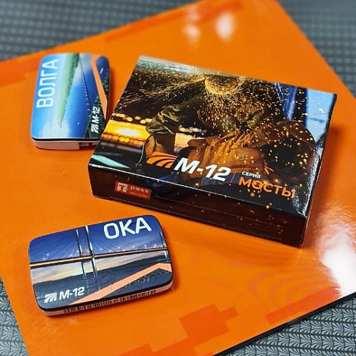 Транспондер T-pass эксклюзивной серии «Мосты» посвящен открытию автодороги М-12. Транспондер T-pass используется для оплаты проезда по платным дорогам. Он позволяет проезжать пункты взимания платы без остановки и с экономией до 15% за счет участия в Программе лояльности. Устройство не требует подзарядки и устанавливается на лобовое стекло автомобиля.